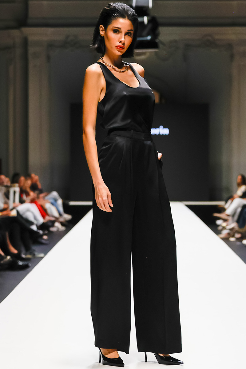 Elegant, airy tank top crafted from luxurious silk satin, featuring a fluid, muscle-tee–inspired silhouette. Designed with a deep U-neckline for a modern, feminine look. Made in Italy.