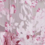 Zartes, Maxikleid aus pink-farbenen Chiffon mit Volants und eingewebten bunten Blüten und goldenen Lurex-Elementen. Überlappender V-Auschnitt, verstellbare Träger. Italienische Fertigung.
