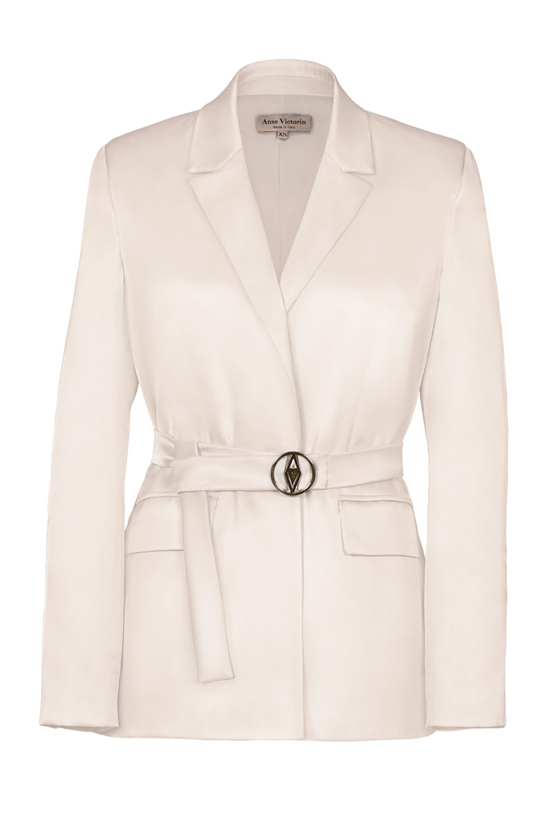 Eleganter Oversize-Blazer mit leichter Taillierung, gefertigt aus hochwertigem Seidengemisch mit subtil schimmerndem Satin-Finish. Einreihiges Design mit Spitzrevers, Paspeltaschen und abnehmbarem Gürtel mit goldener Logo-Schnalle. Made in Italy.